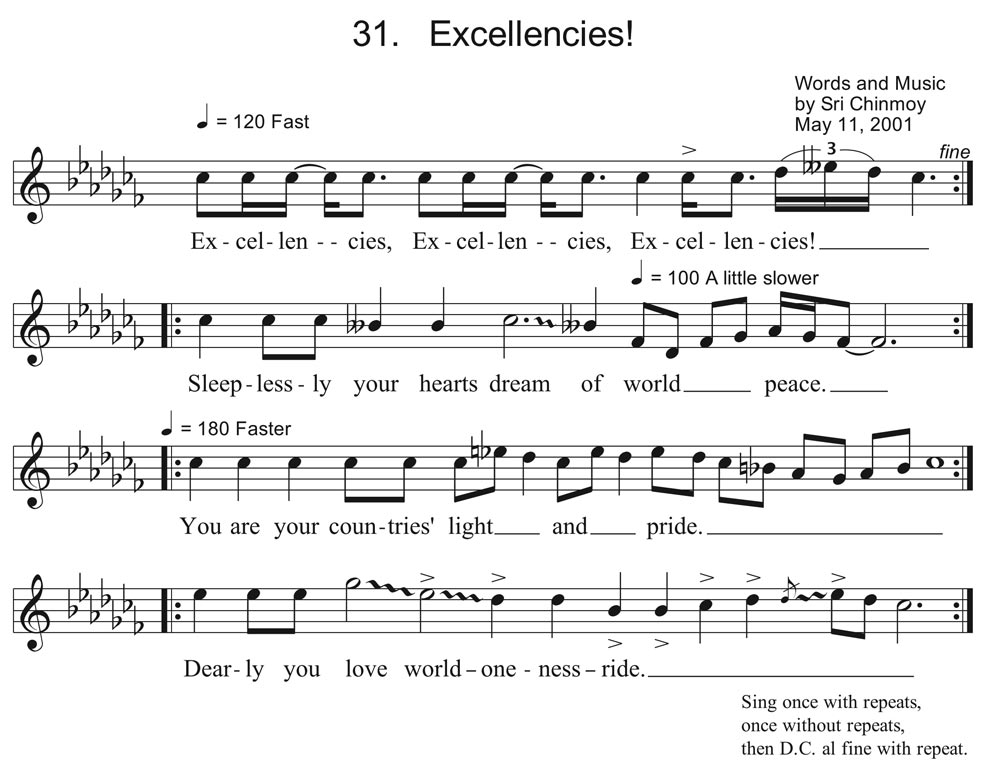 Song composed and performed for an event honouring Ambassadors to the UN on 12 May 2001. Sri Chinmoy lifted the guests overhead on an honorary platform as part of the "Lifting Up the World with a Oneness-Heart" programme.