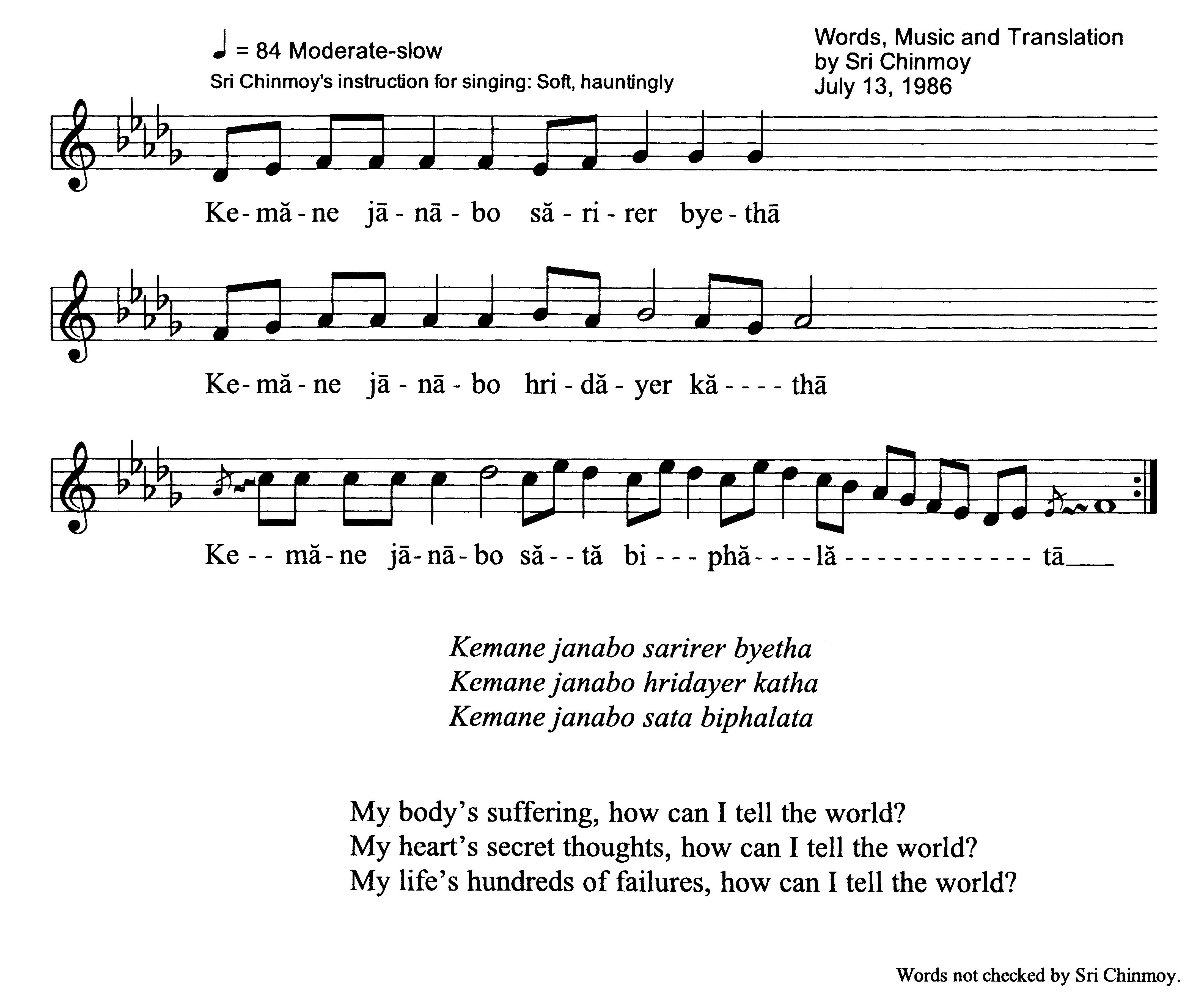 My body’s suffering,How can I tell the world? My heart’s secret thought,How can I tell the world? My life’s hundreds of failures,How can I tell the world?