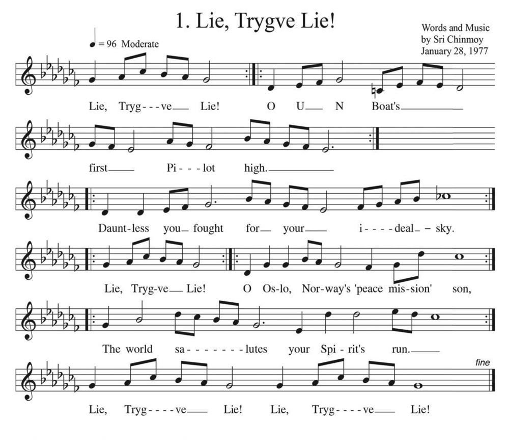 Lie, Trygve Lie! O UN Boat’s first Pilot high, Dauntless you fought for your ideal-sky. Lie, Trygve Lie! O Oslo, Norway’s peace mission-son, The world salutes your spirit’s run.