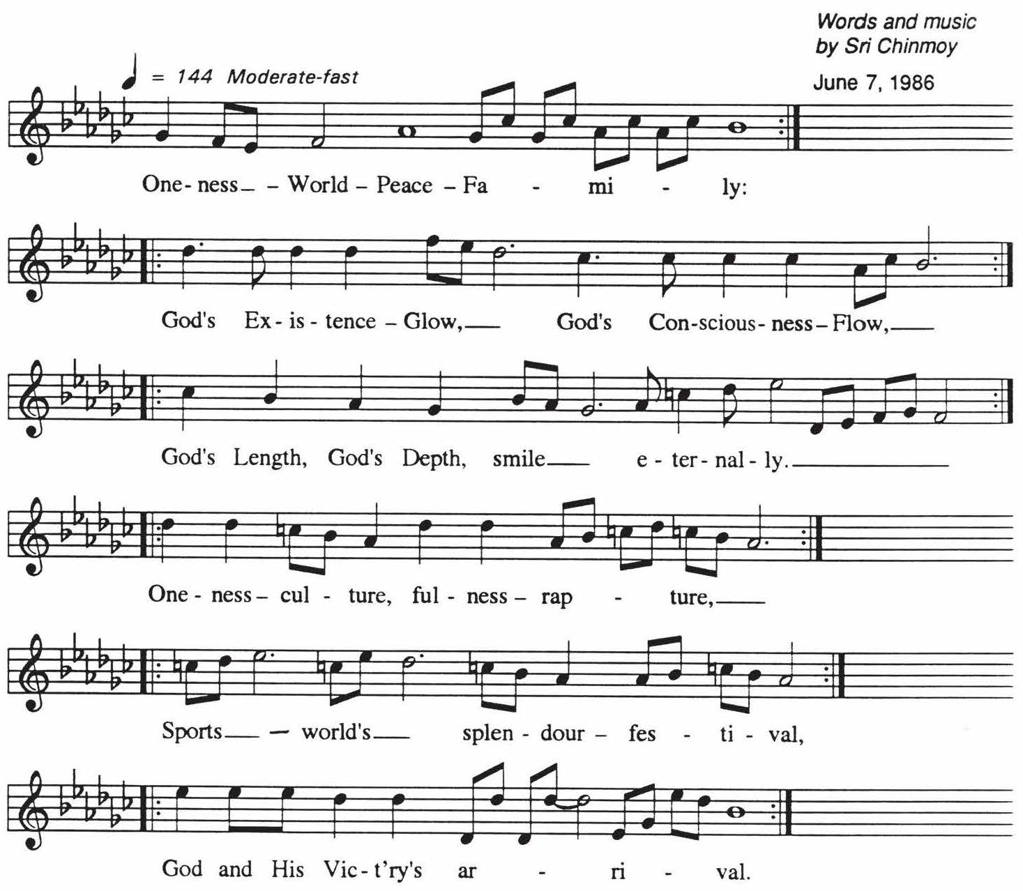 Oneness-World Peace-Family, God’s Existence-Glow, God’s Consciousness-Flow, God’s Length, God’s Depth, smile eternally. Oneness-culture, fulness-rapture, Sports world’s splendour-festival, God and His Victory’s Arrival.