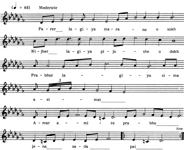 Parer lagiya maraneo sukh Nijher lagiya pijusheo dukh Prabhur lagiya sima asimai Amar amire prabhu jena sada pai