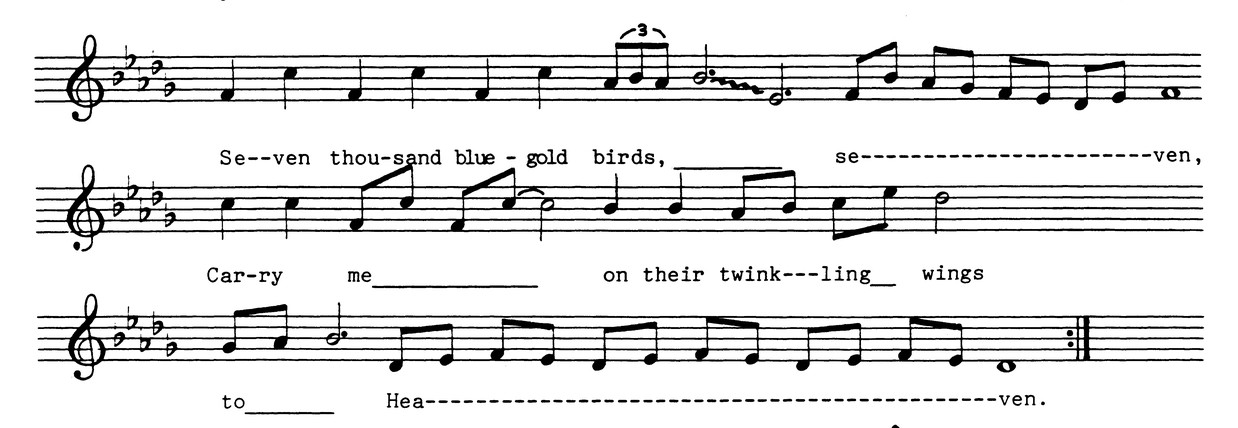 Seven thousand blue-gold birds, seven,
