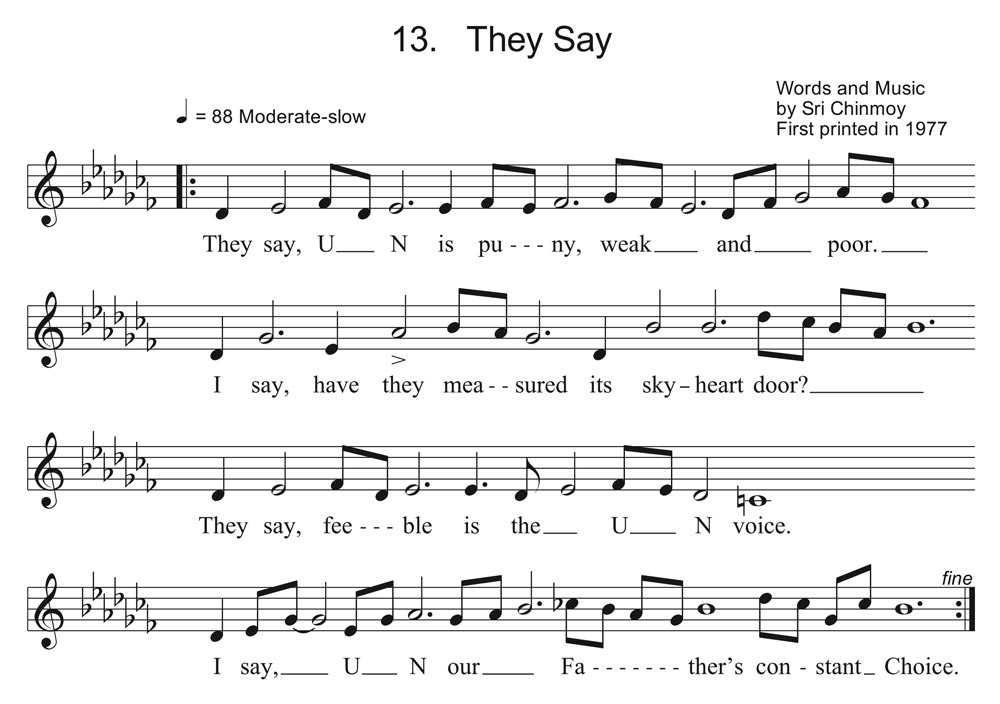They say, UN is puny, weak and poor. I say, have they measured its sky-heart door? They say, feeble is the UN voice. I say, UN our Father’s constant Choice.